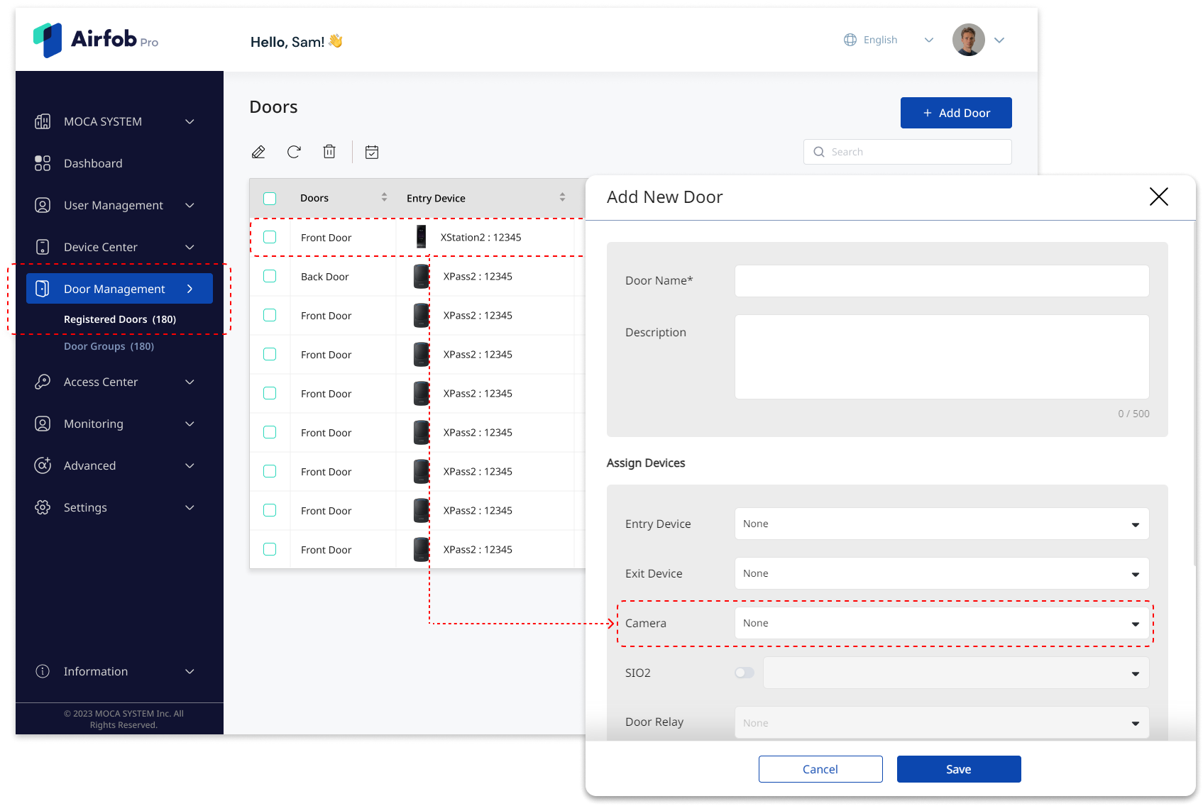 - In the Edit Door pop-up, you can select the camera that will cover the door.