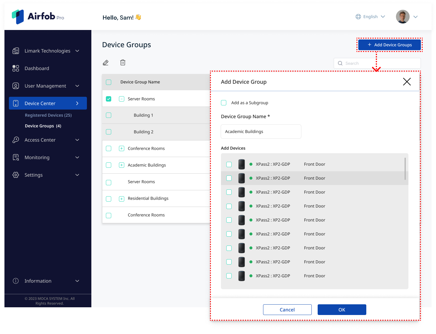Device Group Name: Enter the device group name according to the installed location, rules, etc.Add Devices: Click the checkbox for the devices to belong to the group.Add as a Subgroup: Click the checkbox if you need to set it as a subgroup of an existing group.