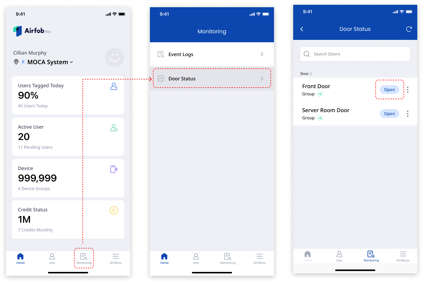 Navigation: Airfob Pro app > Monitoring > Door Status