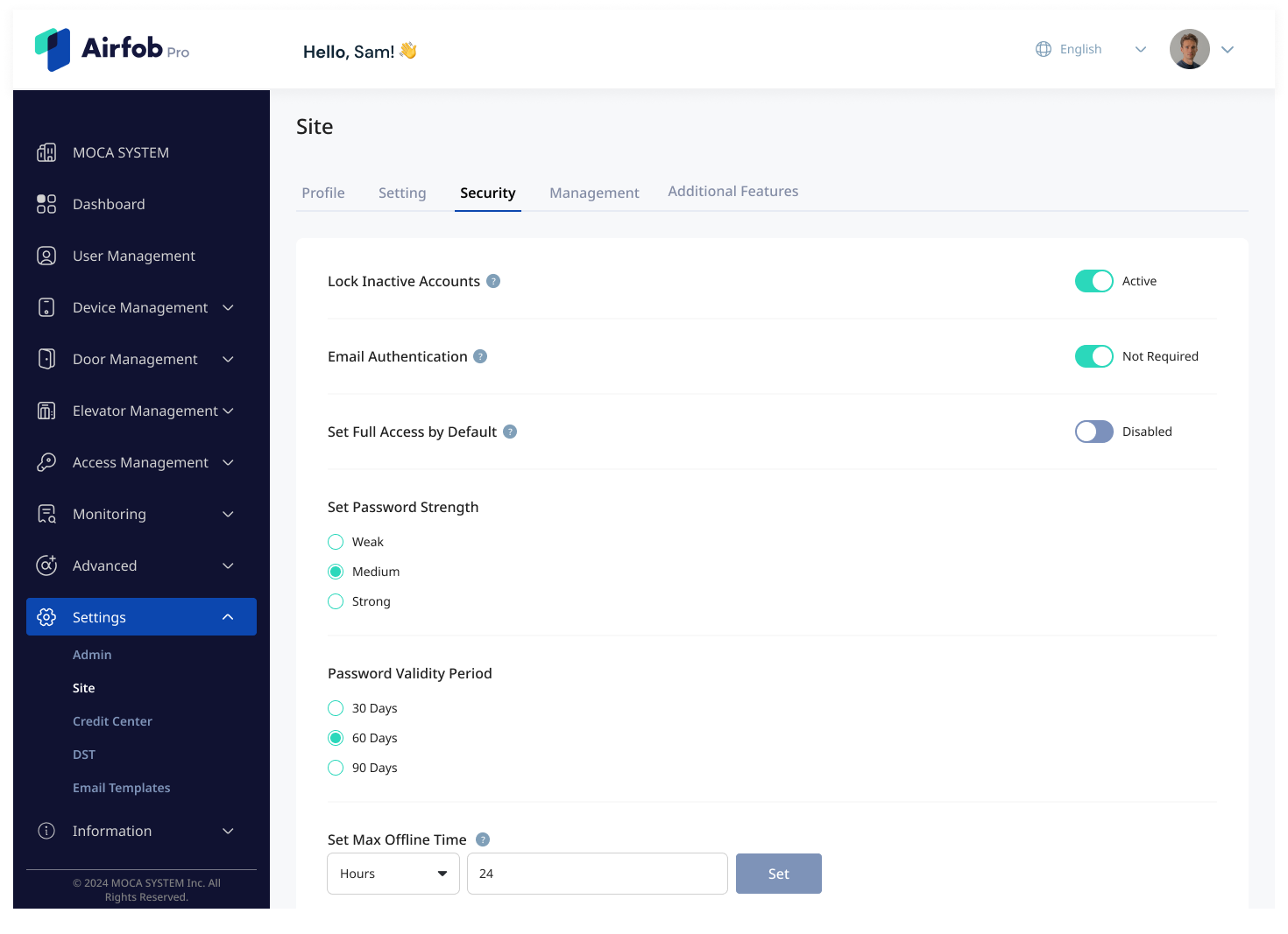 Administrators with master permissions on a site can modify a variety of settings related to security and usability.