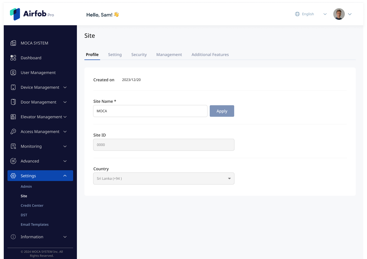 If you have registered devices, you can delete the site after complete deleting the device through the Airfob Pro app.