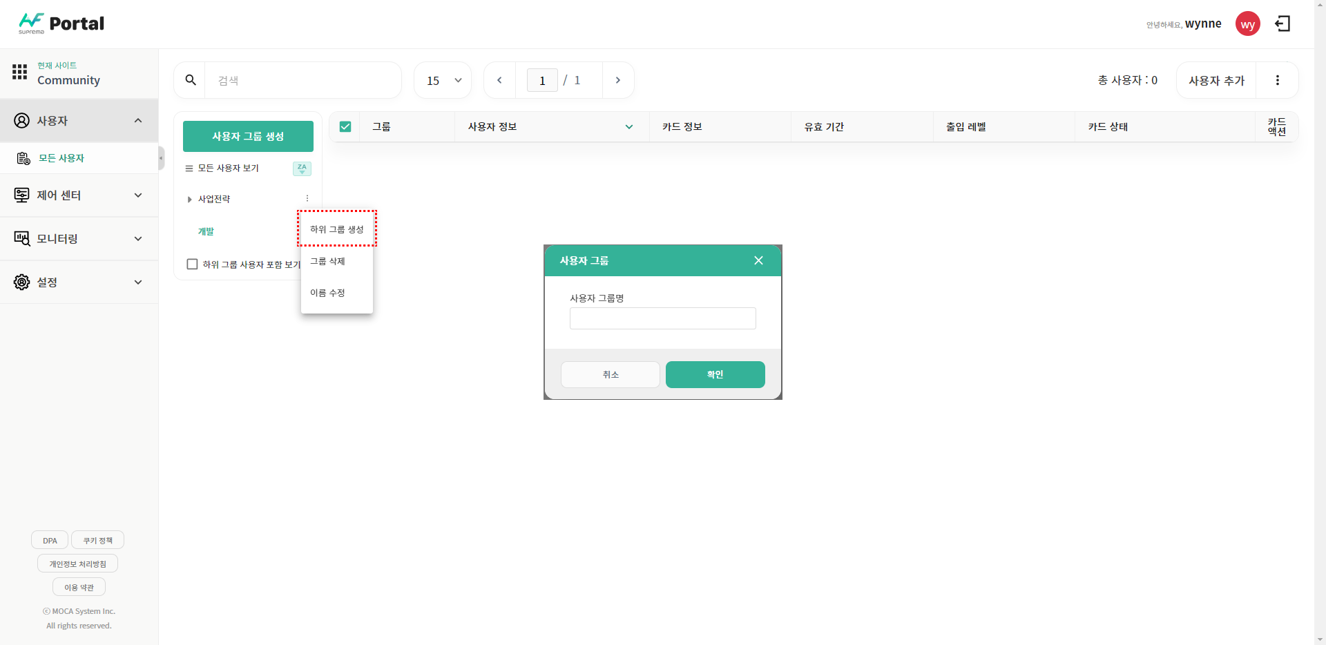 이를 위해서는 우선 사용자 그룹이 생성되어 있어야 합니다. 아래 예시를 통해, 사용자 그룹 사용법을 확인하세요.