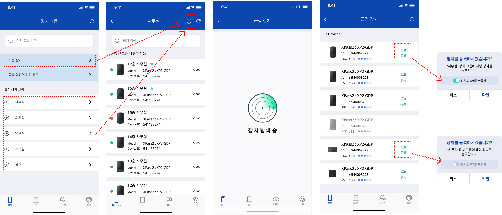 공간의 출입문 1개와 설치된 장치들을 하나의 출입문 단위로 관리할 수 있습니다. 출입문에 설치된 에어팝 장치라면, 장치 등록과 동시에 출입문을 만드는 것이 편리합니다.